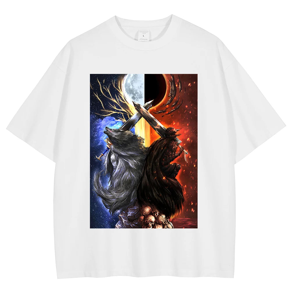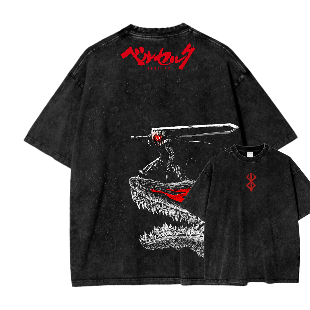 Berserk Wolf of the Eclipse vs Black Swordsman Oversized Vintage T-Shirt
