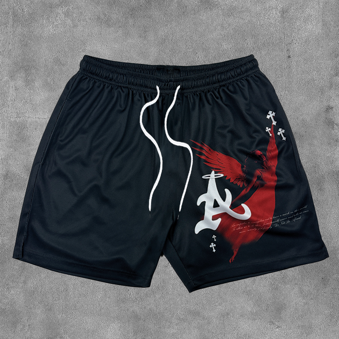 Cross Angel Faith Print Mesh Shorts