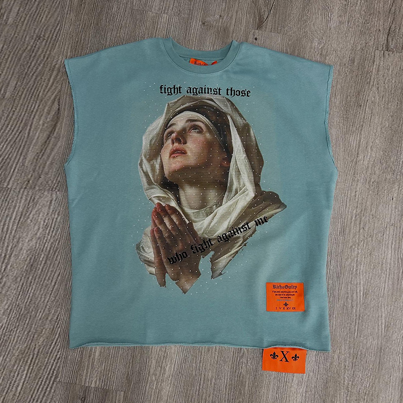 Vintage Prayer Print Sleeveless T-Shirt