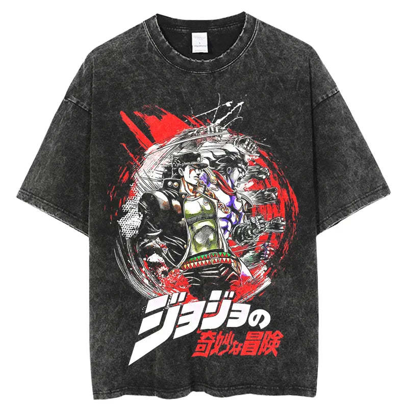 JoJo's Bizarre Adventure Epic World Vintage Vintage T-Shirt. Premium 100% cotton tee featuring a bold, vintage-inspired Jojo's Bizarre Adventure graphic. Oversized fit for a relaxed, streetwear look. Soft, breathable fabric. Ribbed crew neck. Double-stitched sleeves and hem. Sizes S-3XL. Machine wash cold, inside out. Perfect forJojo's Bizarre Adventure fans and casual anime style. Durable print stays vibrant. Ideal for everyday wear or cosplay events.