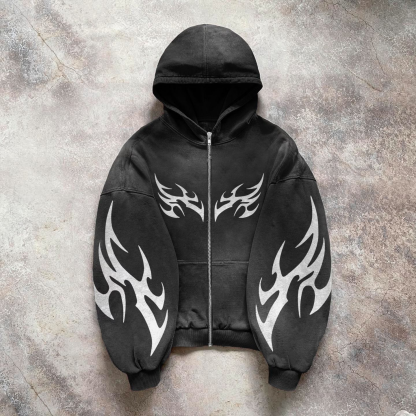 Statement Street Style Print Zip-Up Hoodie