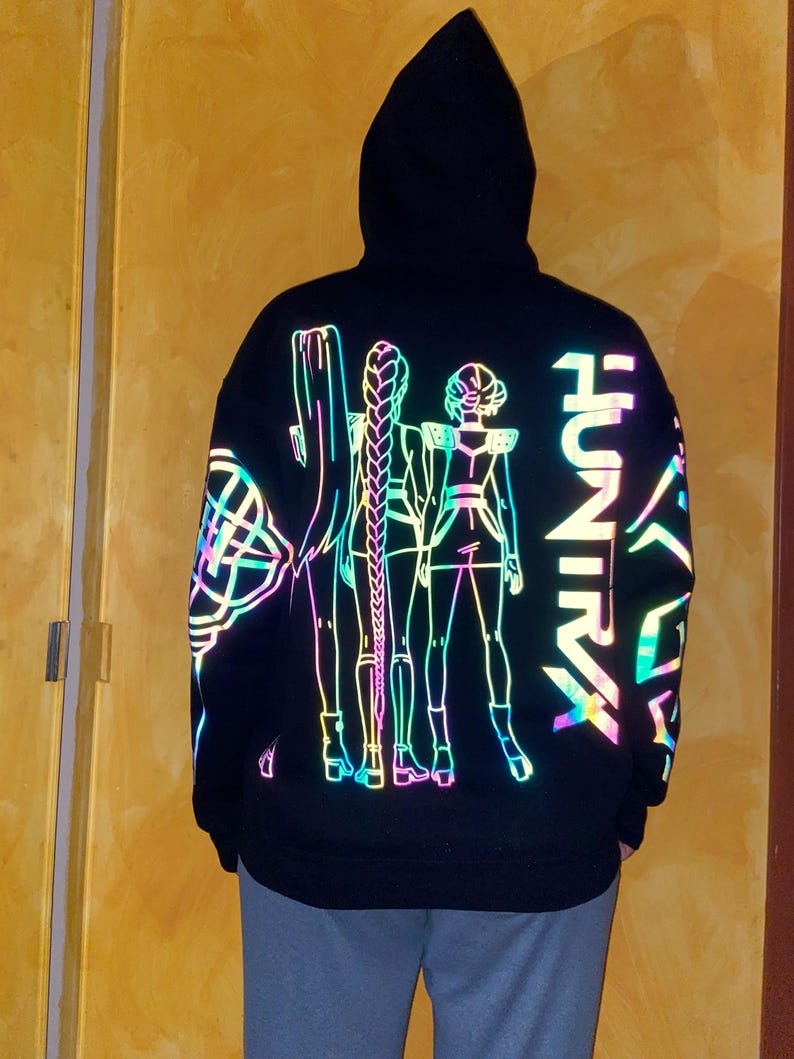 Huntr.x Rainbow Reflective Hoodie, loose fitting nighttime riding garment pullover