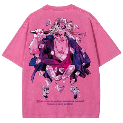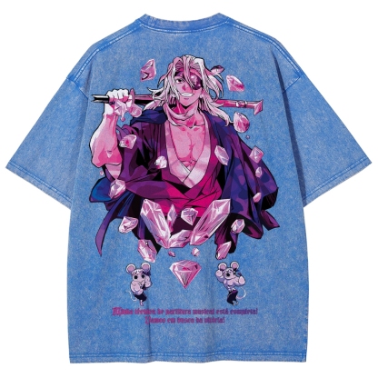 Demon Slayer Uzui Tengen Unisex Fit Washed T-Shirt 2504004051