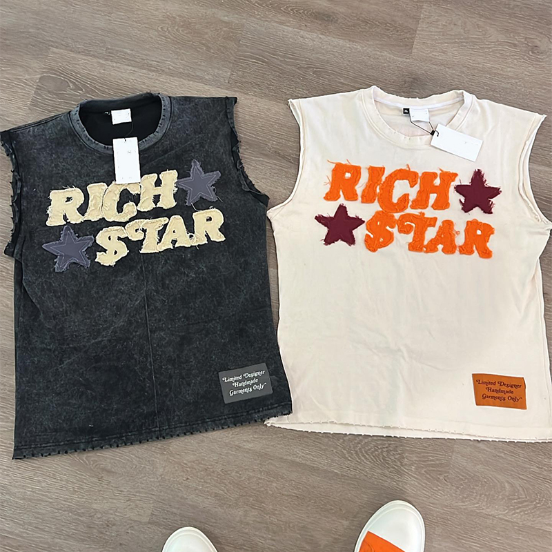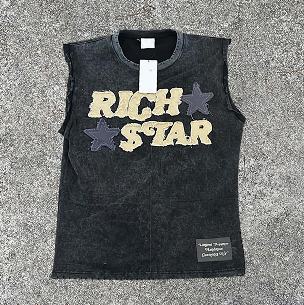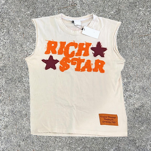 Vintage Applique Round Neck Sleeveless T-Shirt