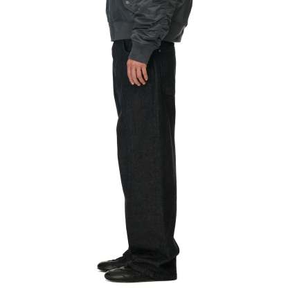 14,5oz raw denim / 100% cotton / diagonal-cut / embroidery on front and back / wash inside out / straight fit / fits true to size