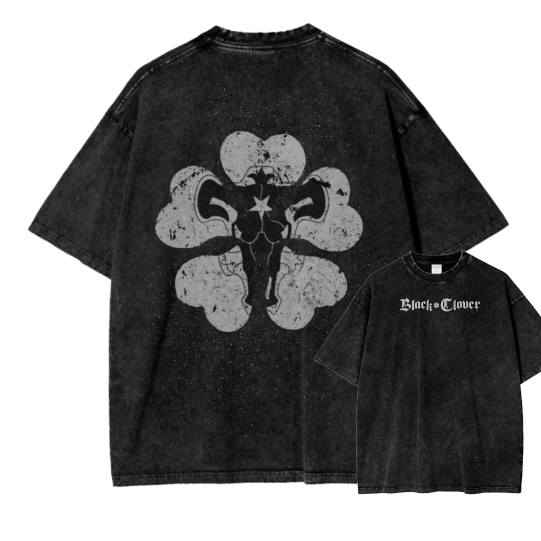 BLACK CLOVER V ACID WASH TEE