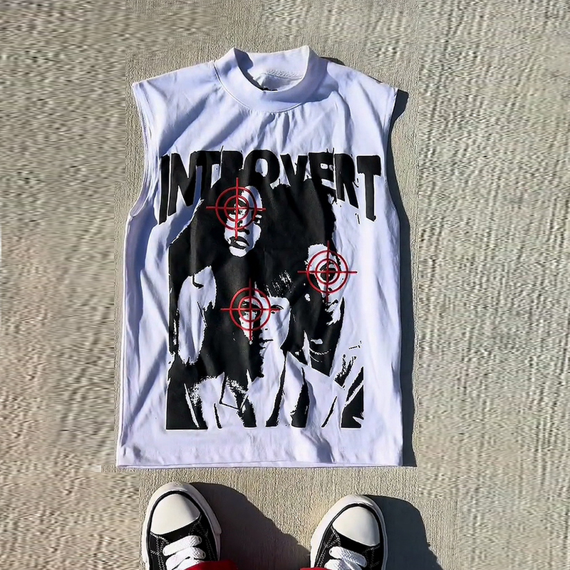 Casual round neck custom printed oversized sleeveless T-shirt