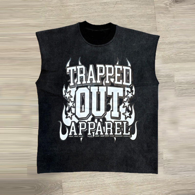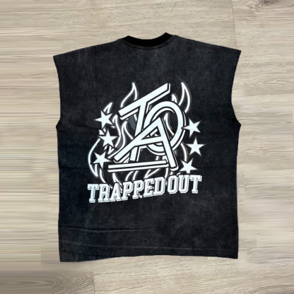 Casual sleeveless oversized printed T-shirt