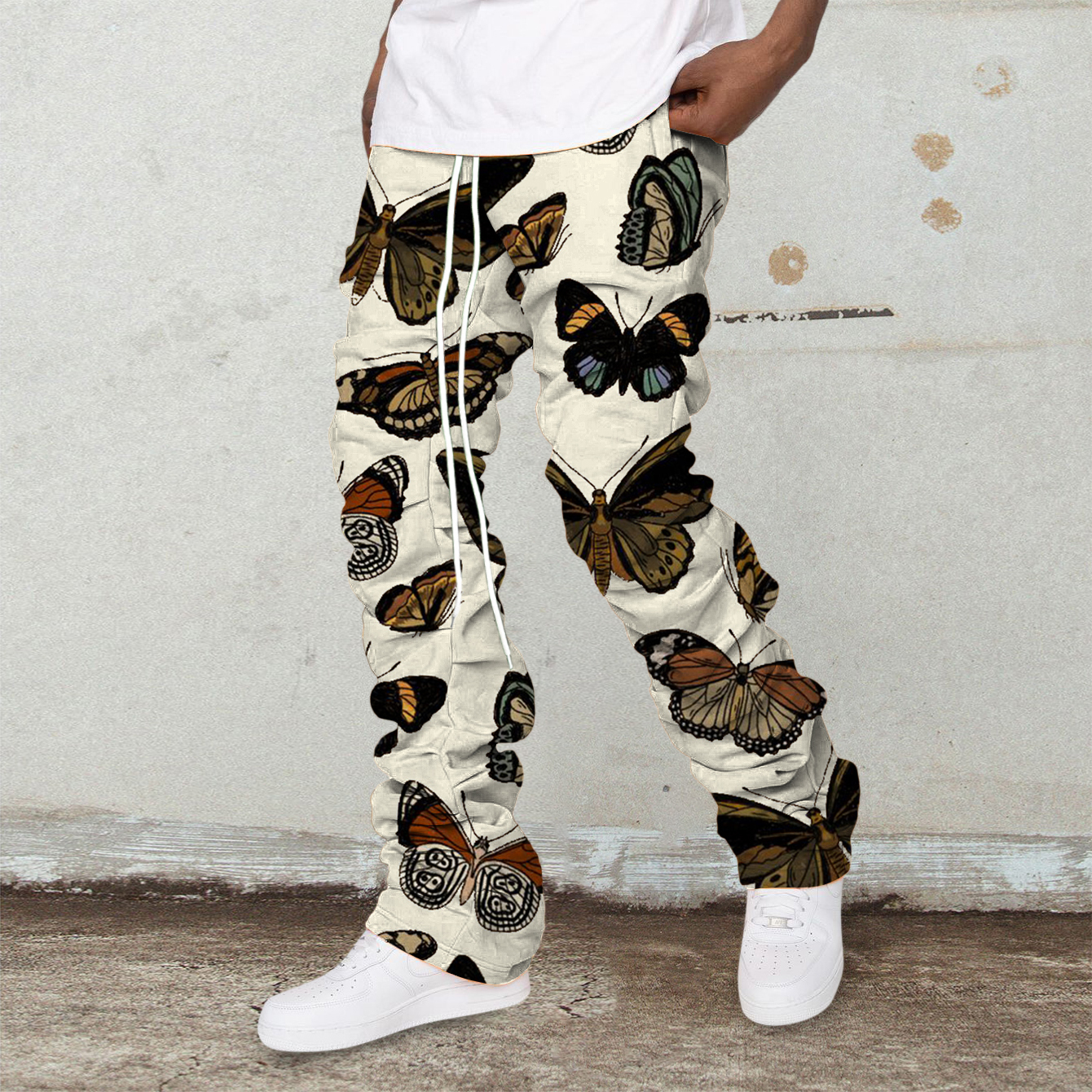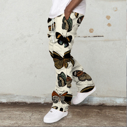 Vintage Butterfly Print Street Stacking Trousers