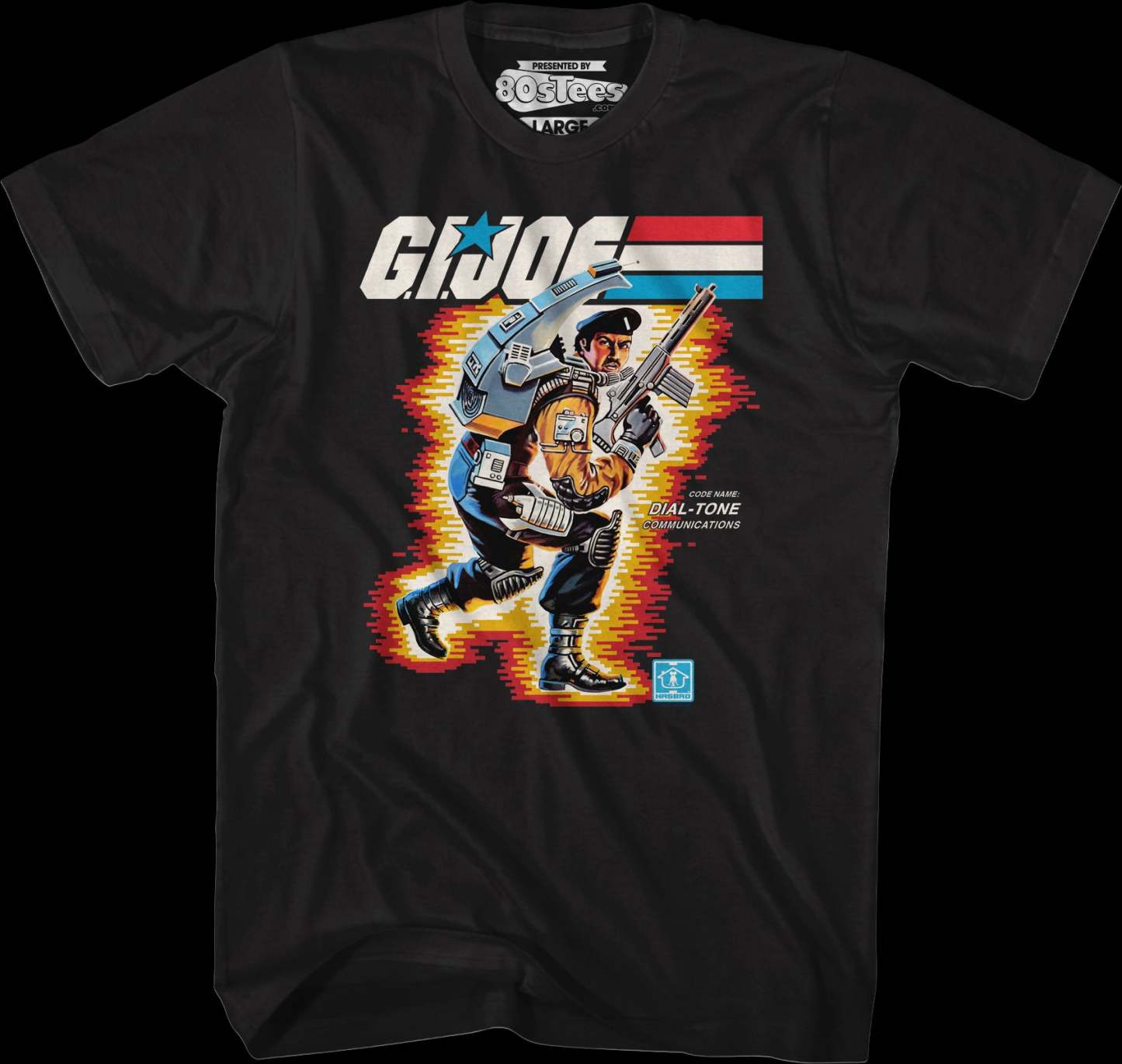 This 80sTees.com exclusive GI Joe t-shirt features the artwork that appeared on the box for the Dial-Tone action figure.