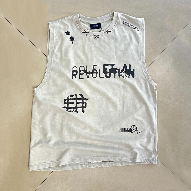 Casual distressed printed sleeveless T-shirt