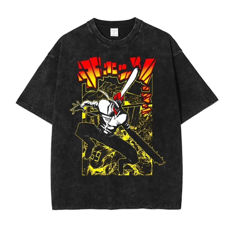 Chainsaw Man Fiery Resilience Vintage T-Shirt. Premium 100% cotton tee featuring a bold, vintage-inspired Chainsaw Man graphic. Oversized fit for a relaxed, streetwear look. Soft, breathable fabric. Ribbed crew neck. Double-stitched sleeves and hem. Sizes S-3XL. Machine wash cold, inside out. Perfect forChainsaw Man fans and casual anime style. Durable print stays vibrant. Ideal for everyday wear or cosplay events.