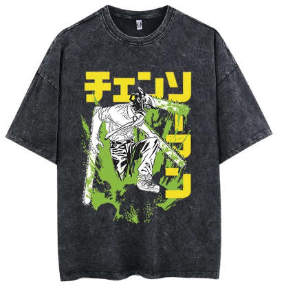 Chainsaw Man Twisted World Vintage T-Shirt. Premium 100% cotton tee featuring a bold, vintage-inspired Chainsaw Man graphic. Oversized fit for a relaxed, streetwear look. Soft, breathable fabric. Ribbed crew neck. Double-stitched sleeves and hem. Sizes S-3XL. Machine wash cold, inside out. Perfect forChainsaw Man fans and casual anime style. Durable print stays vibrant. Ideal for everyday wear or cosplay events.