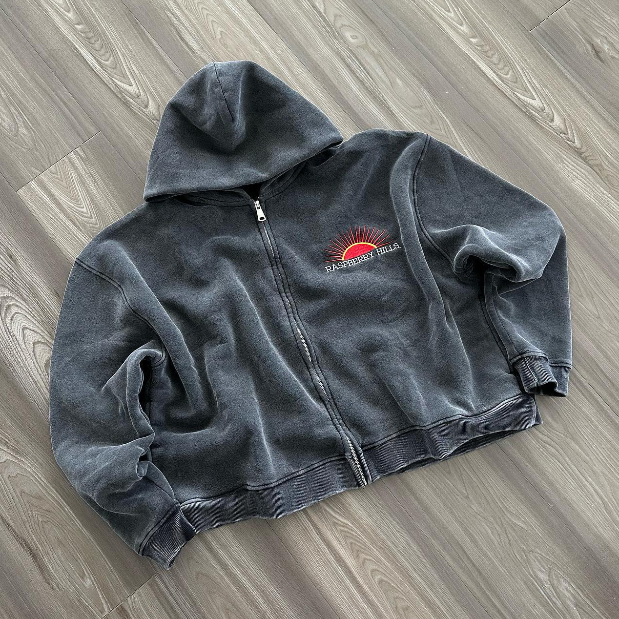 Distressed Vintage Print Zip-Up Hoodie