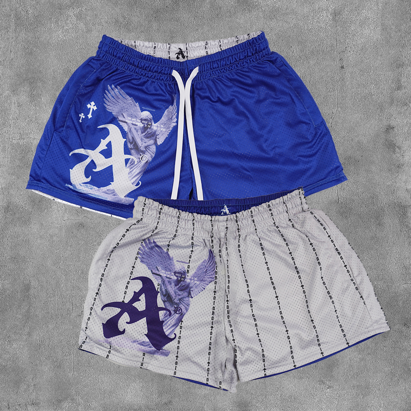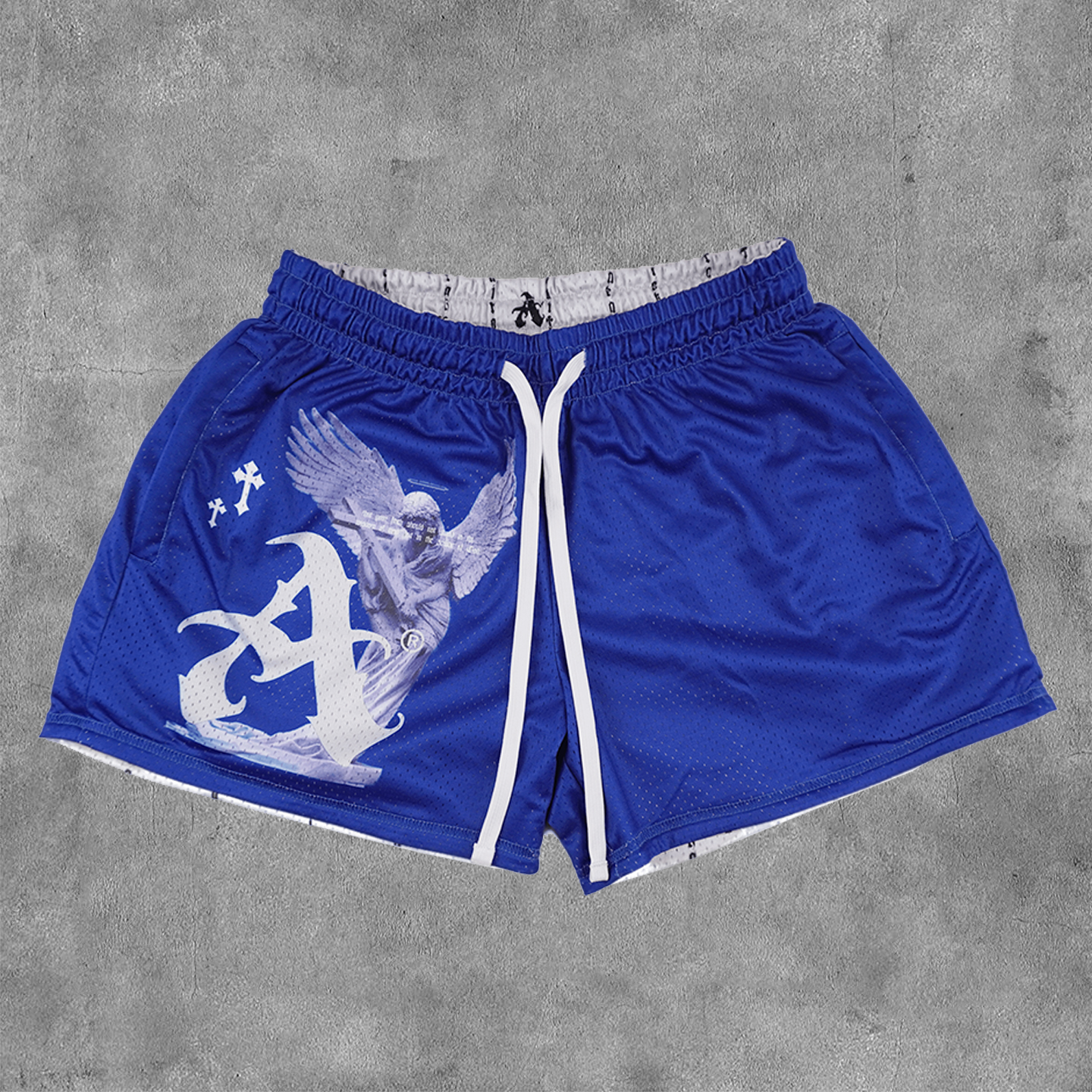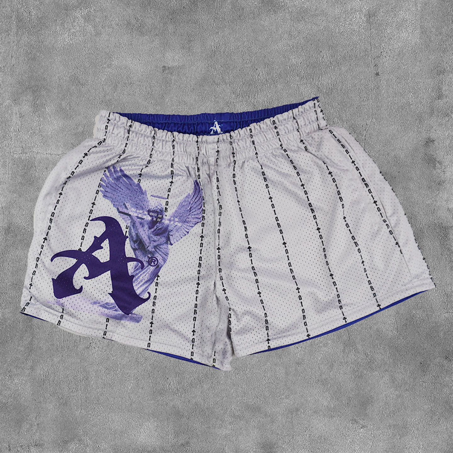 Faith Angel Print Reversible Mesh Shorts