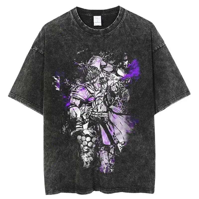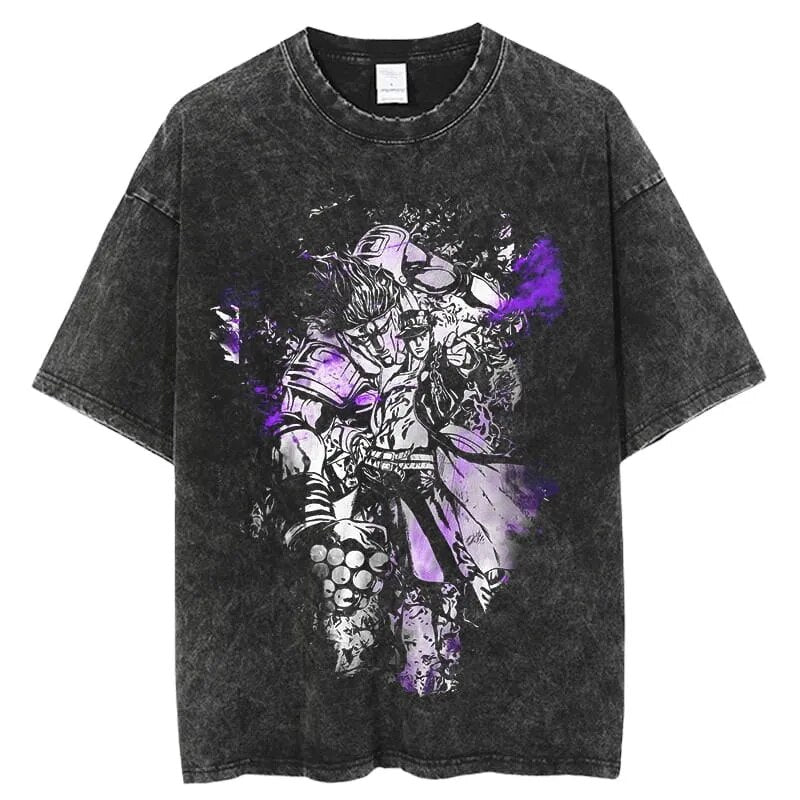 Jojo's Bizzare Adventure Ripple Warrior Vintage T-Shirt. Premium 100% cotton tee featuring a bold, vintage-inspired Jojo's Bizarre Adventure graphic. Oversized fit for a relaxed, streetwear look. Soft, breathable fabric. Ribbed crew neck. Double-stitched sleeves and hem. Sizes S-3XL. Machine wash cold, inside out. Perfect forJojo's Bizarre Adventure fans and casual anime style. Durable print stays vibrant. Ideal for everyday wear or cosplay events.