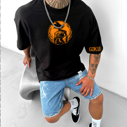 Oversized Casual Dragon Ball Goku Anime Silhouette Large Print T-Shirt