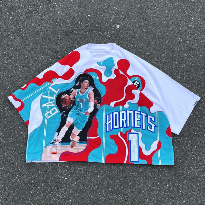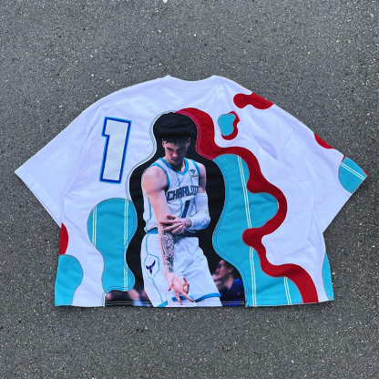 Oversized quarter sleeve basketball contrast print T-shirt
