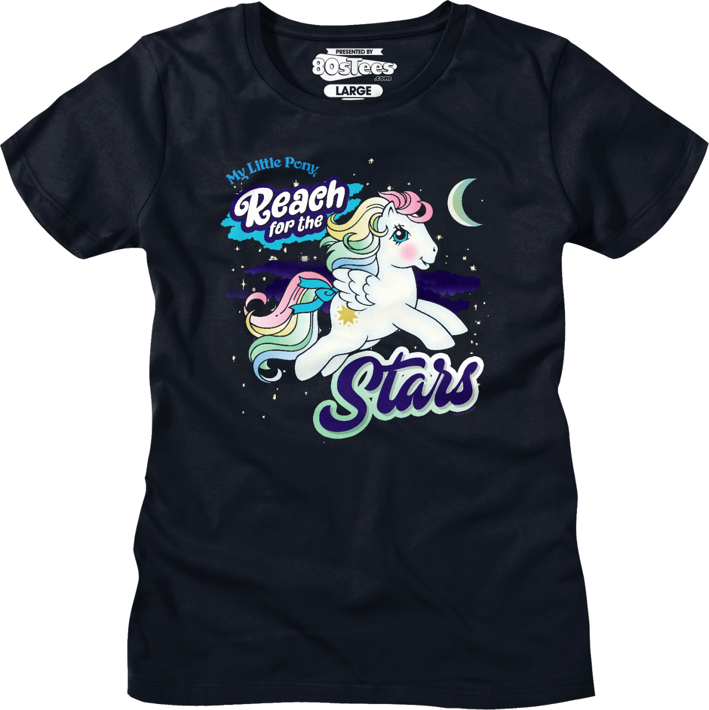 This 80sTees.com exclusive My Little Pony t-shirt features an image of the popular Pegasus Pony Starshine. The shirt reads "Reach for the Stars."