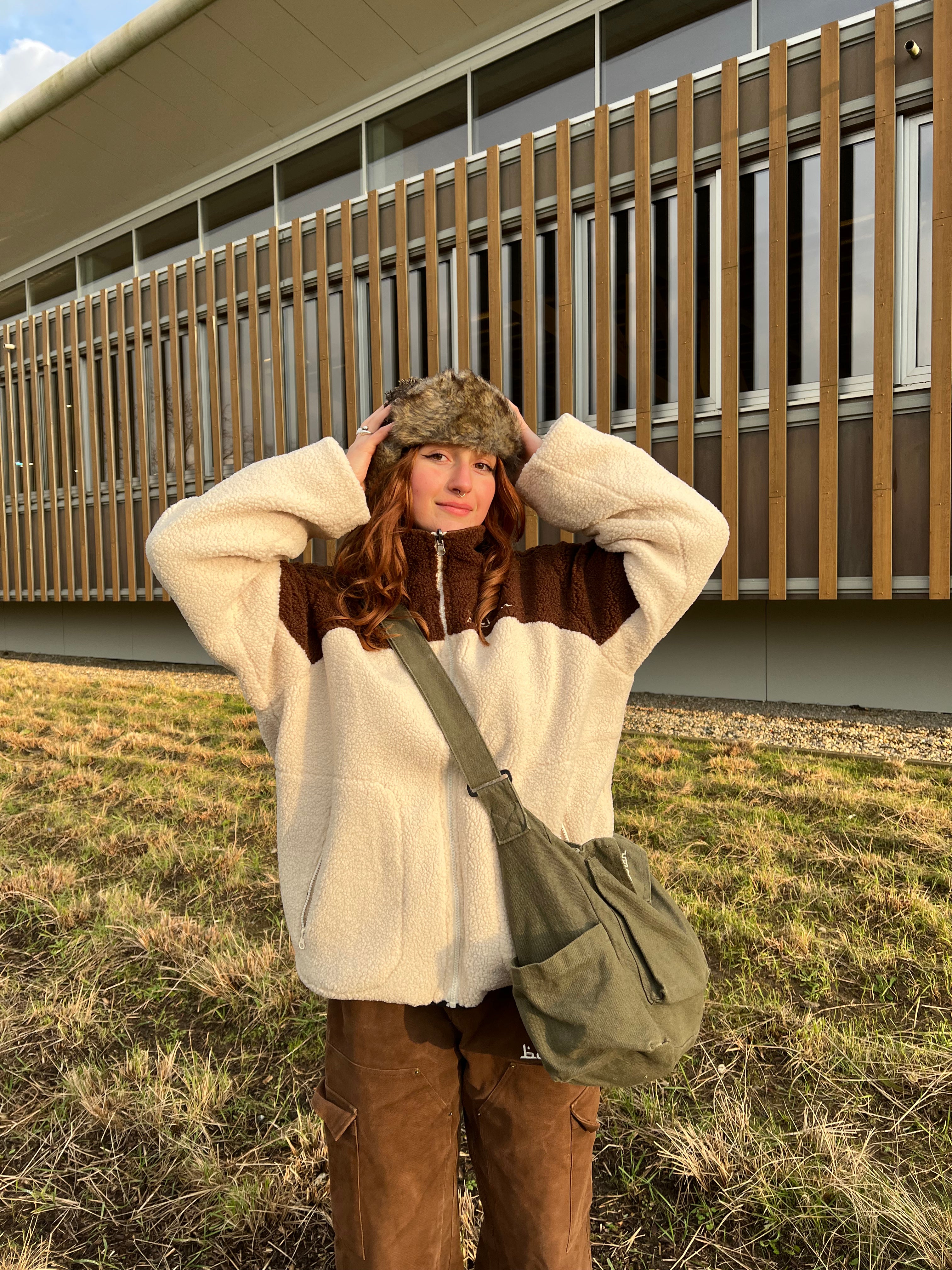 Mona is 1.68m and wearing a size L, creating an oversize look
