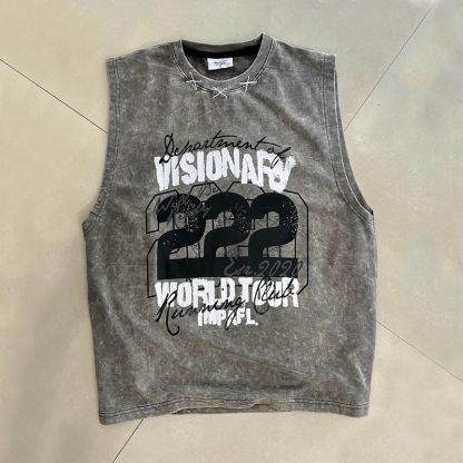 Street Retro Distressed Custom Printed Sleeveless T-shirt