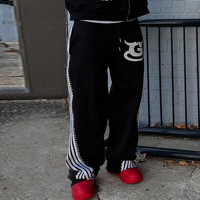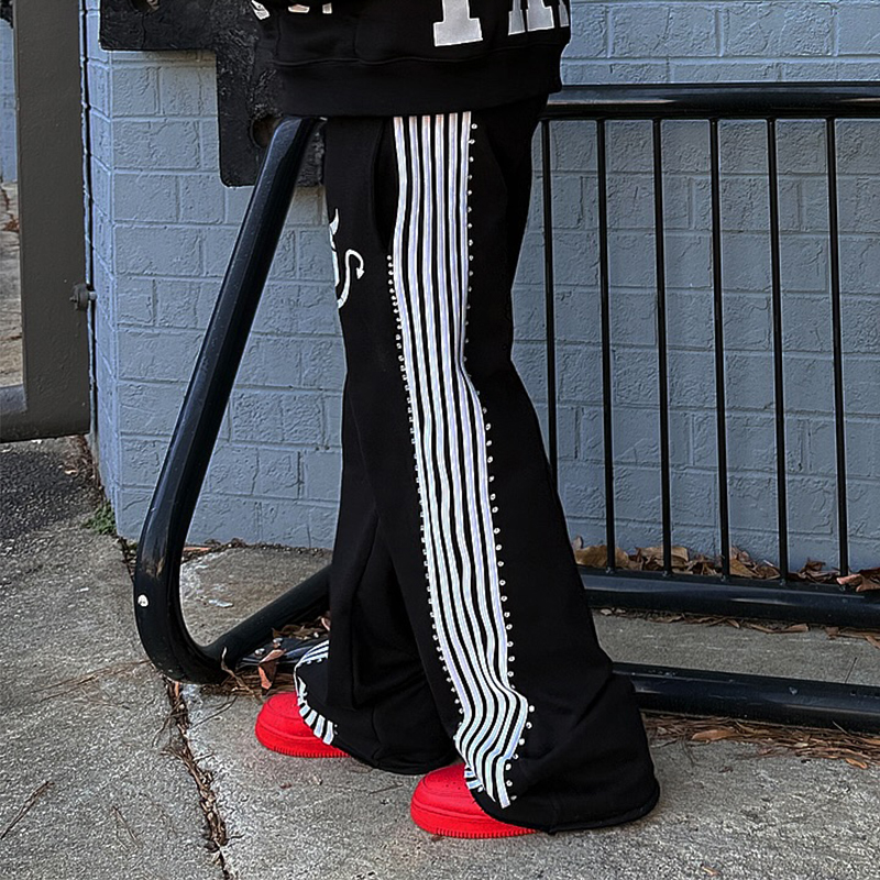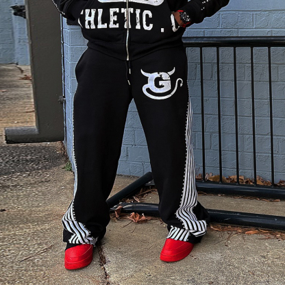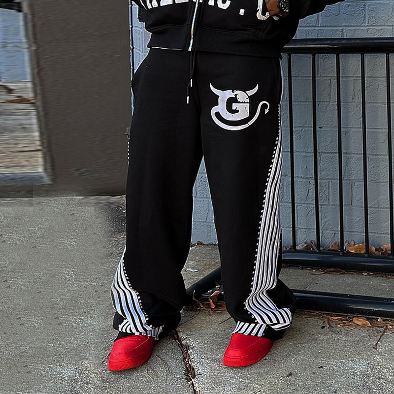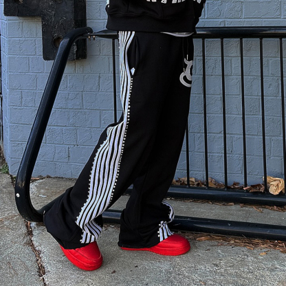Street Stripe Print Casual Wide-Leg Pants
