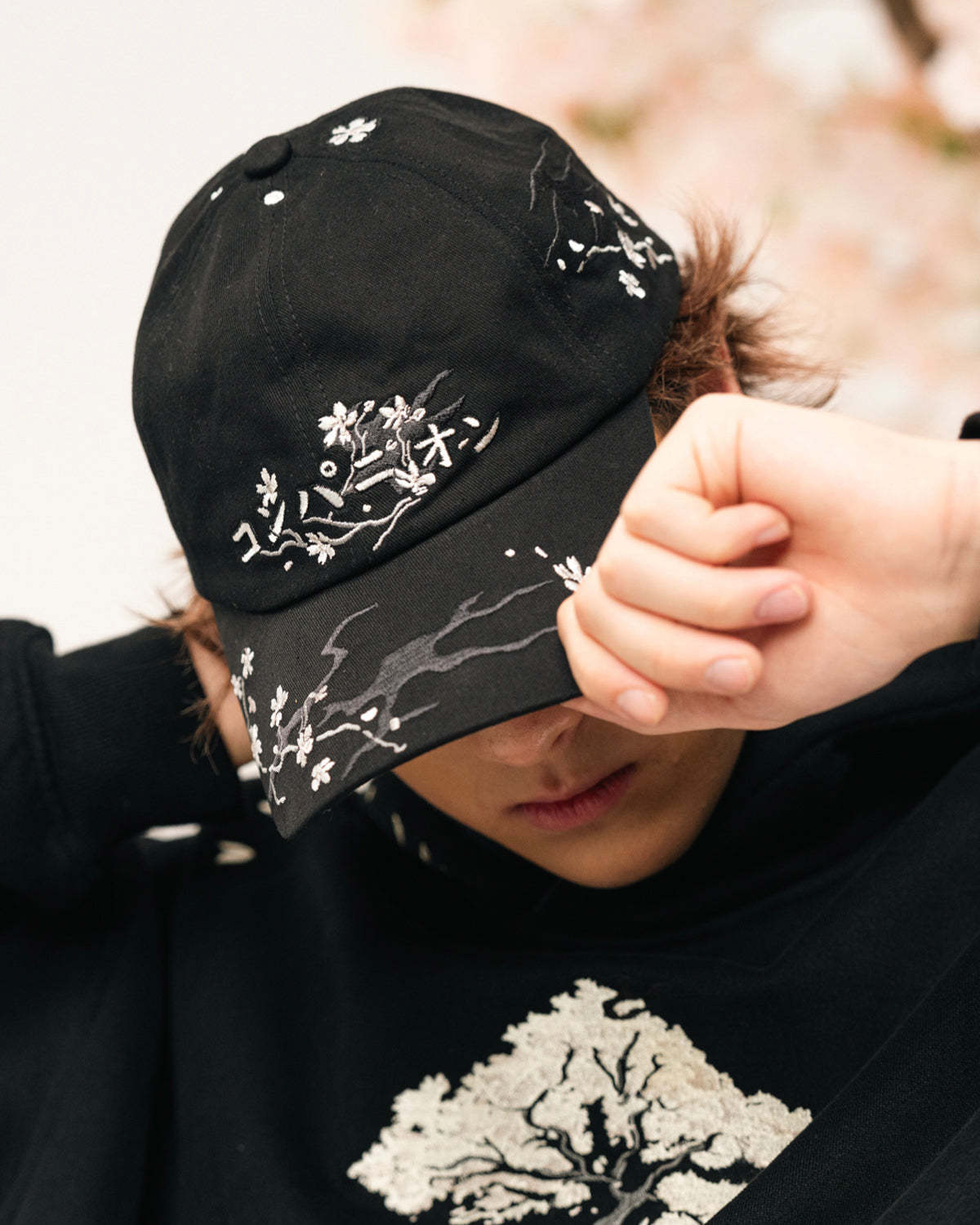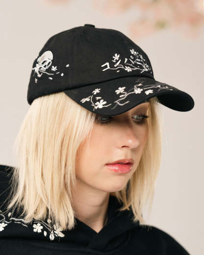 Custom 6 Panel Cap with All Over Skull Blossom Embroidery