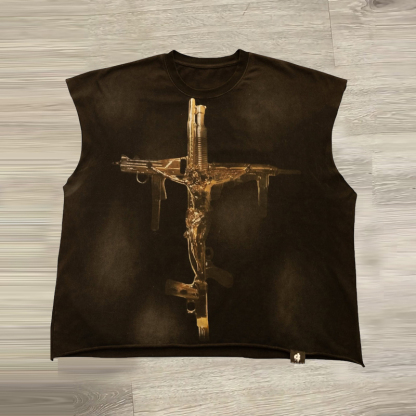 Vintage Jesus Print Sleeveless T-Shirt