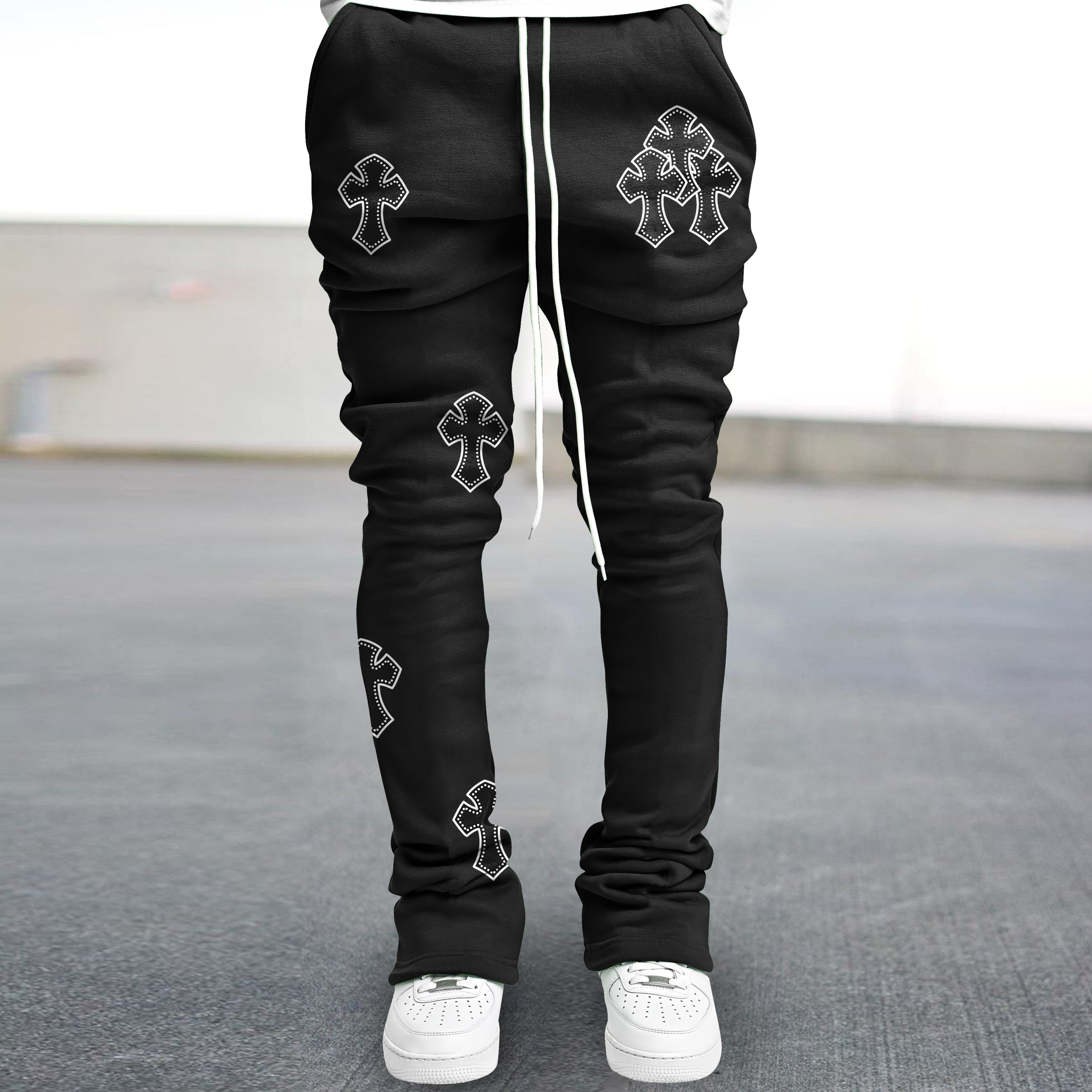 Vintage Street Style Cross Print Trousers