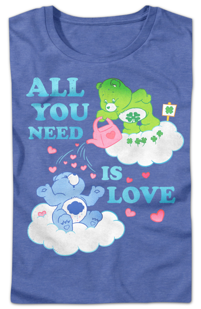 Good Luck Bear and Grumpy Bear are two of the original Care Bears who first appeared on American Greetings greeting cards, then gained worldwide recognition on the classic Care Bears cartoon. They are two of the most popular Care Bears of all time, and everyone will know you are a fan when you wear this Womens All You Need Is Love Care Bears Shirt!