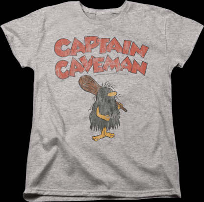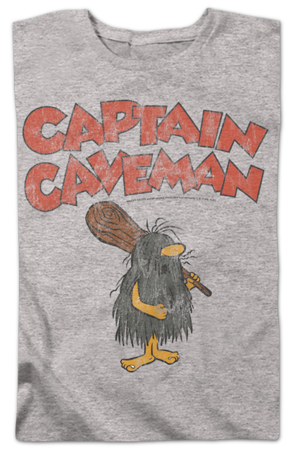 After being thawed out by the Teen Angels, Captain Caveman carried his trusty club and helped to solve supernatural-related mysteries. He is known as the world's first superhero, and his battle cry is "Captain CAAAAAVEMAAAAAAANNNN!" Everyone will know you are a fan of the classic animated character when you wear this Womens Vintage Captain Caveman Shirt!