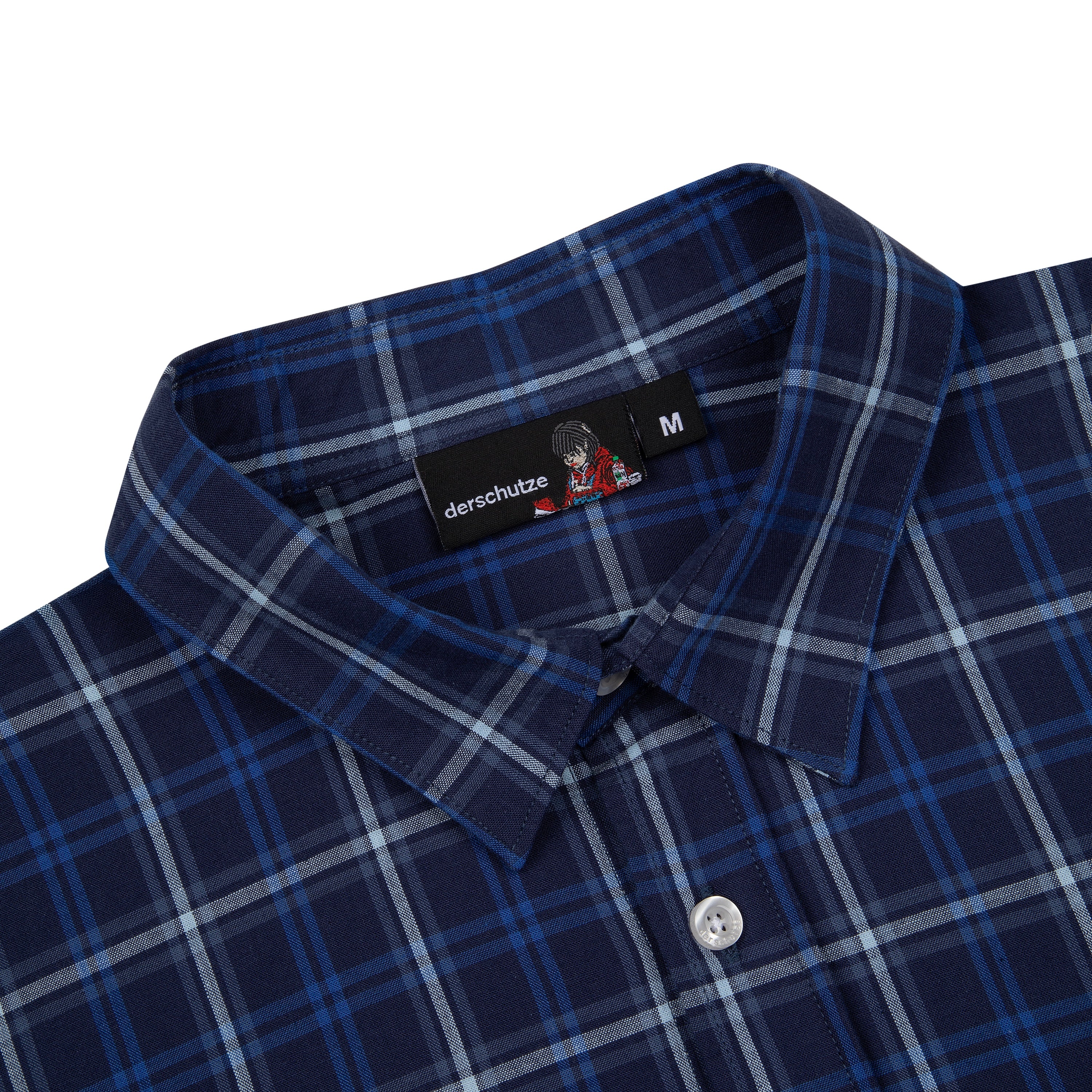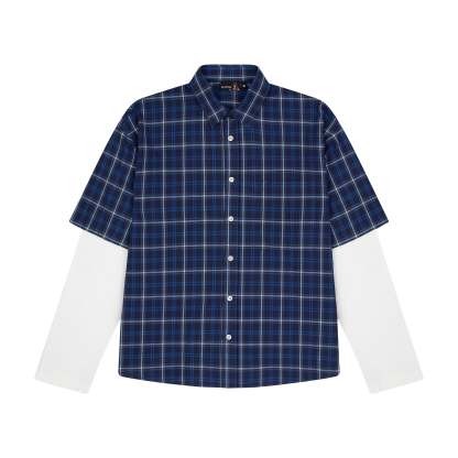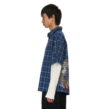 plaid popeline fabric / 100% cotton / waffle sleeves (100% cotton) / embroidery on back / custom buttons / curved hem / relaxed fit / fits true to size