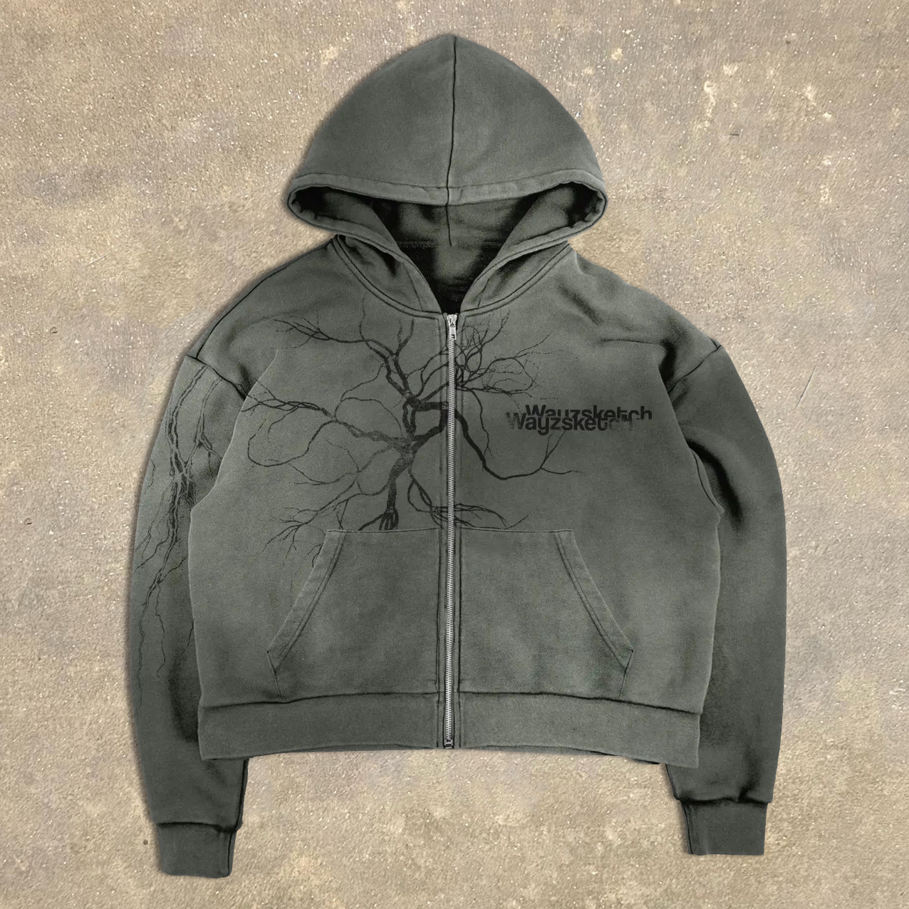 Branches Letter Print Long Sleeve Zipper Hoodies