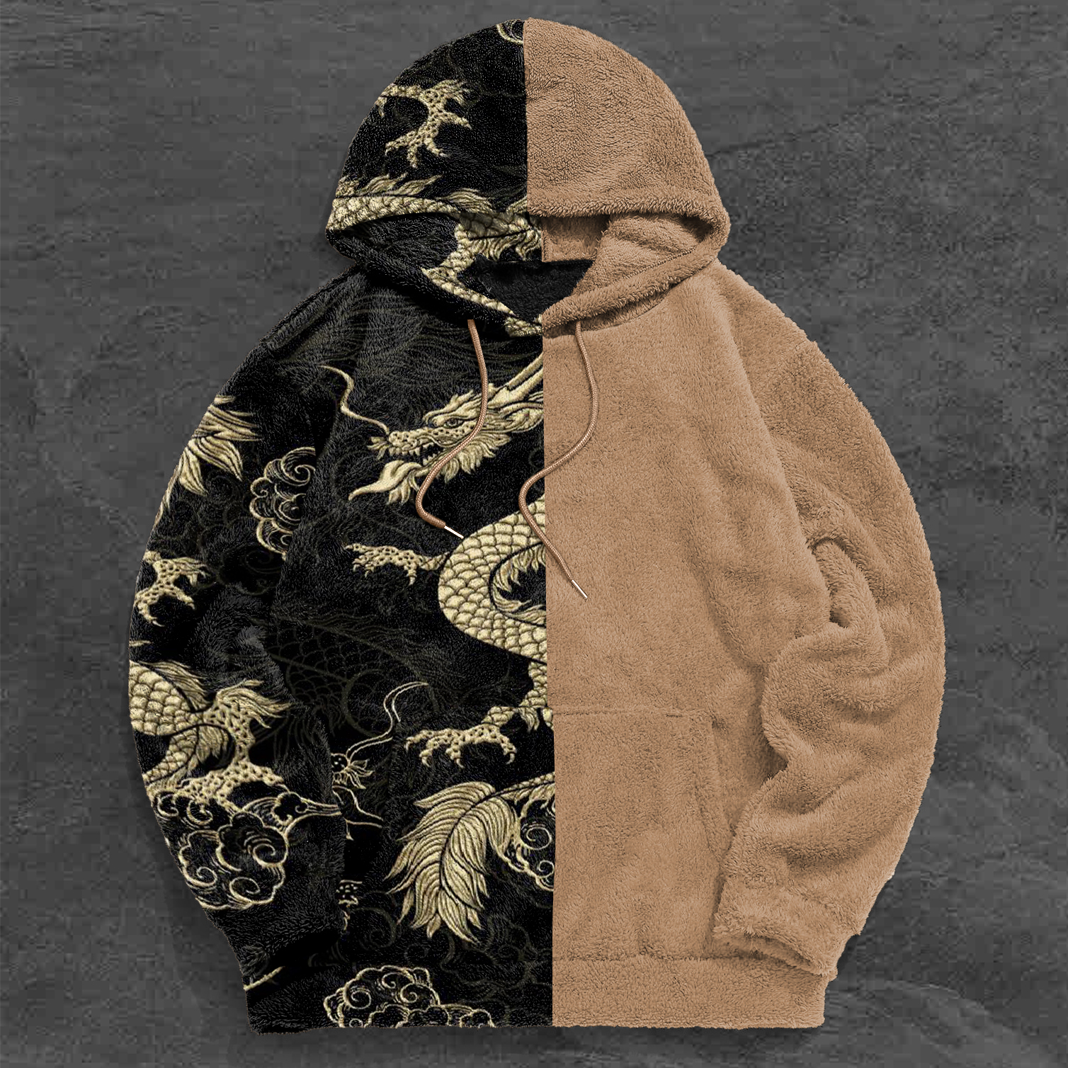 Colorblock Vintage Print Plush Lounge Hoodie