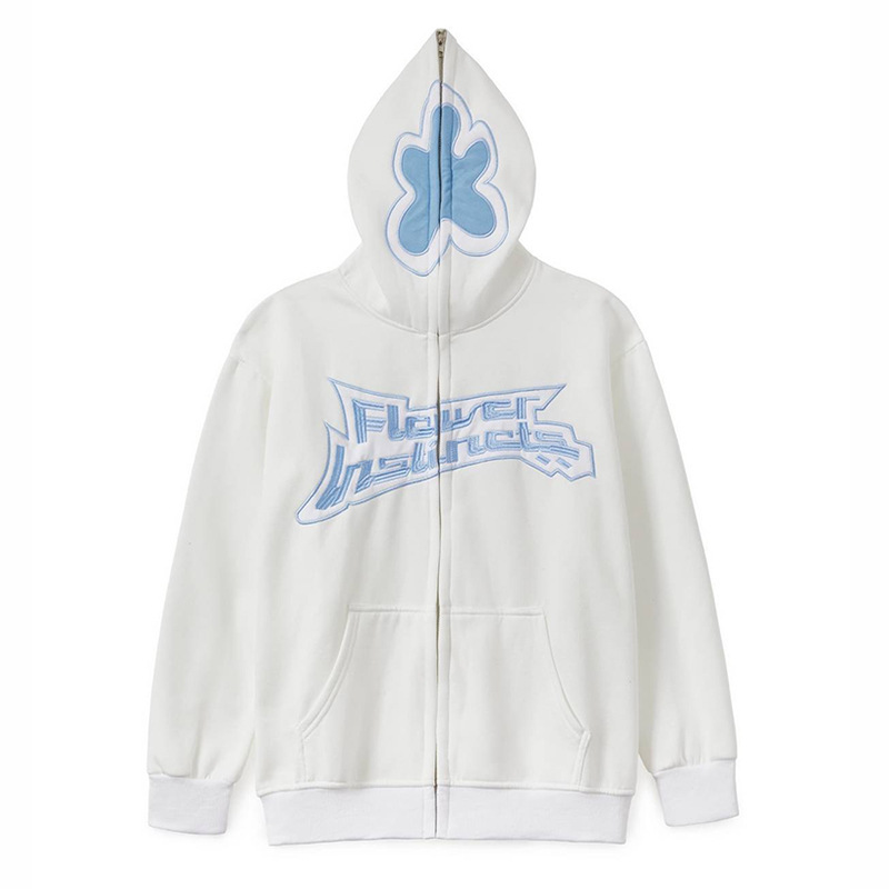 Y2k Oversized Flower Embroidery Pattern Loose Sweatshirt Zipper Hoodie