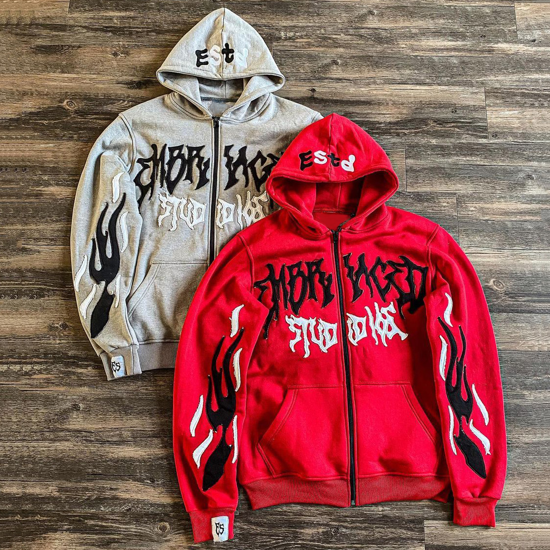 Embracer Studios Flame Print Long Sleeve Zipper Hoodies