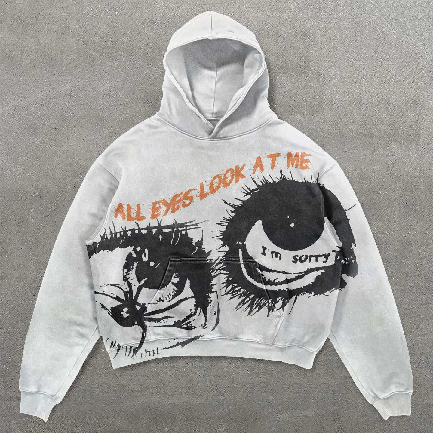 All Eyes Look At Me Print Long Sleeve Hoodies