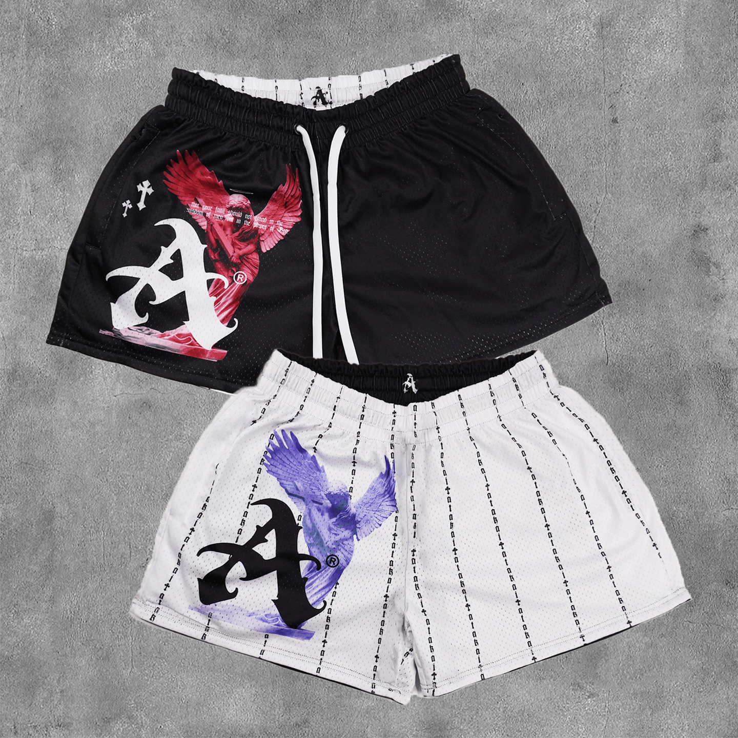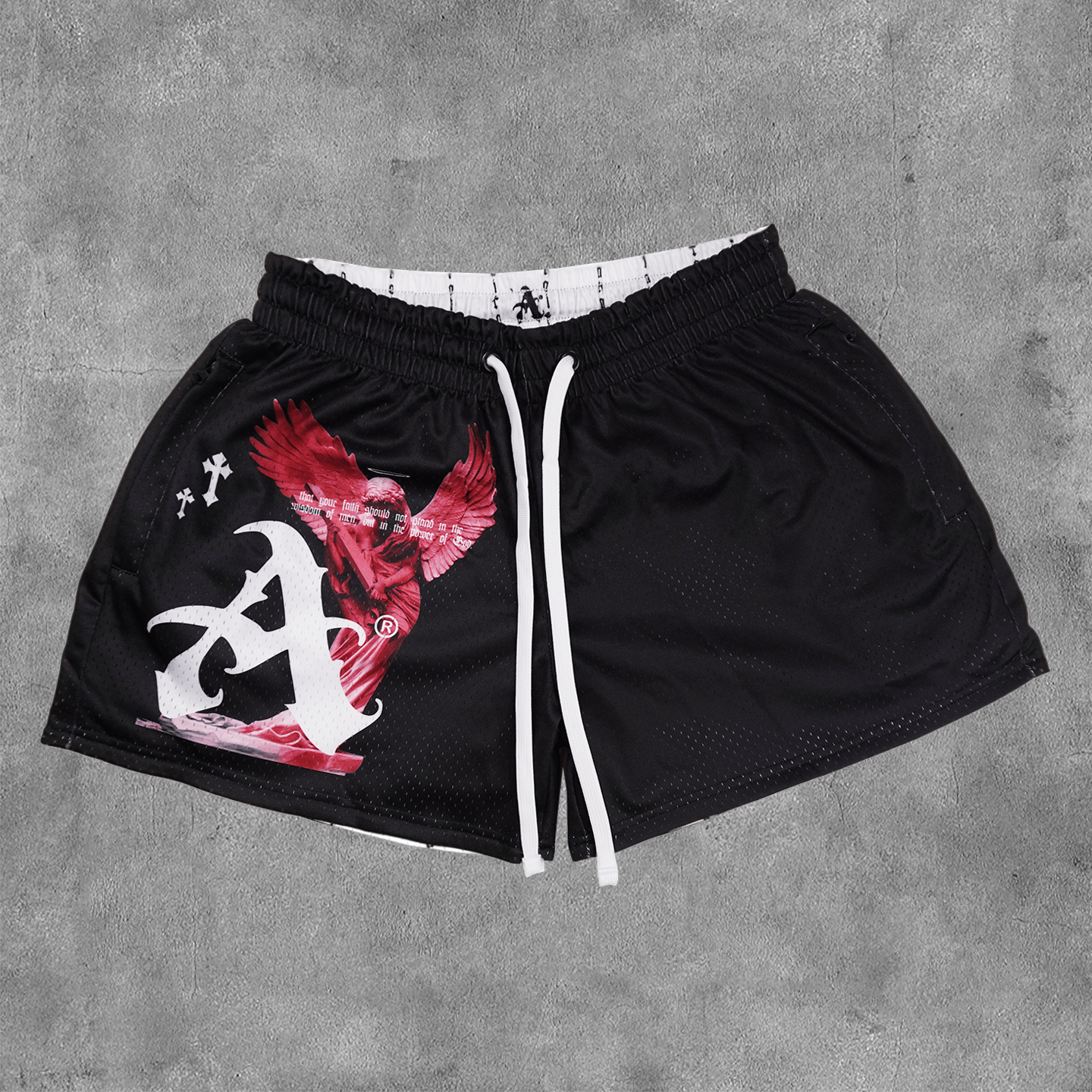 Angel Faith Print Reversible Mesh Shorts