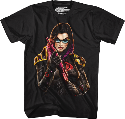 This 80sTees.com exclusive GI Joe t-shirt features an image of Cobra member Baroness that is inspired by the 6" GI Joe Classified figure series.