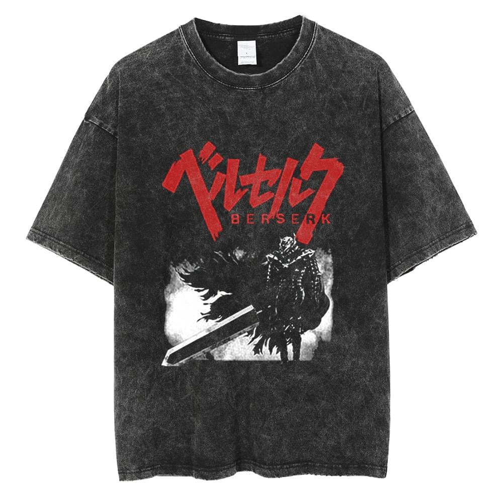 Berserk Guts Warrior Vintage T-Shirt. Premium 100% cotton tee featuring a bold, vintage-inspired Berserk graphic. Oversized fit for a relaxed, streetwear look. Soft, breathable fabric. Ribbed crew neck. Double-stitched sleeves and hem. Sizes S-3XL. Machine wash cold, inside out. Perfect forBerserk fans and casual anime style. Durable print stays vibrant. Ideal for everyday wear or cosplay events.