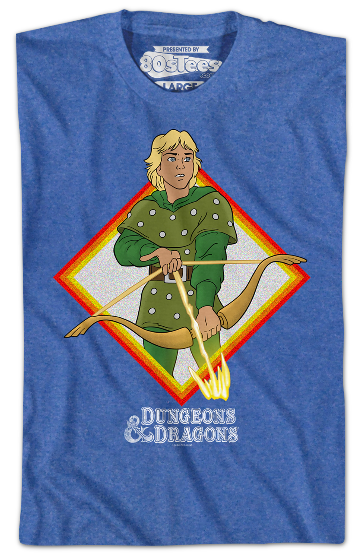 This 80sTees.com exclusive Dungeons & Dragons t-shirt features an image of Hank, the Ranger posing with his bow and arrow of glowing energy.