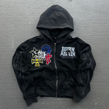 Born Again Print Long Sleeve Zipper Hoodies