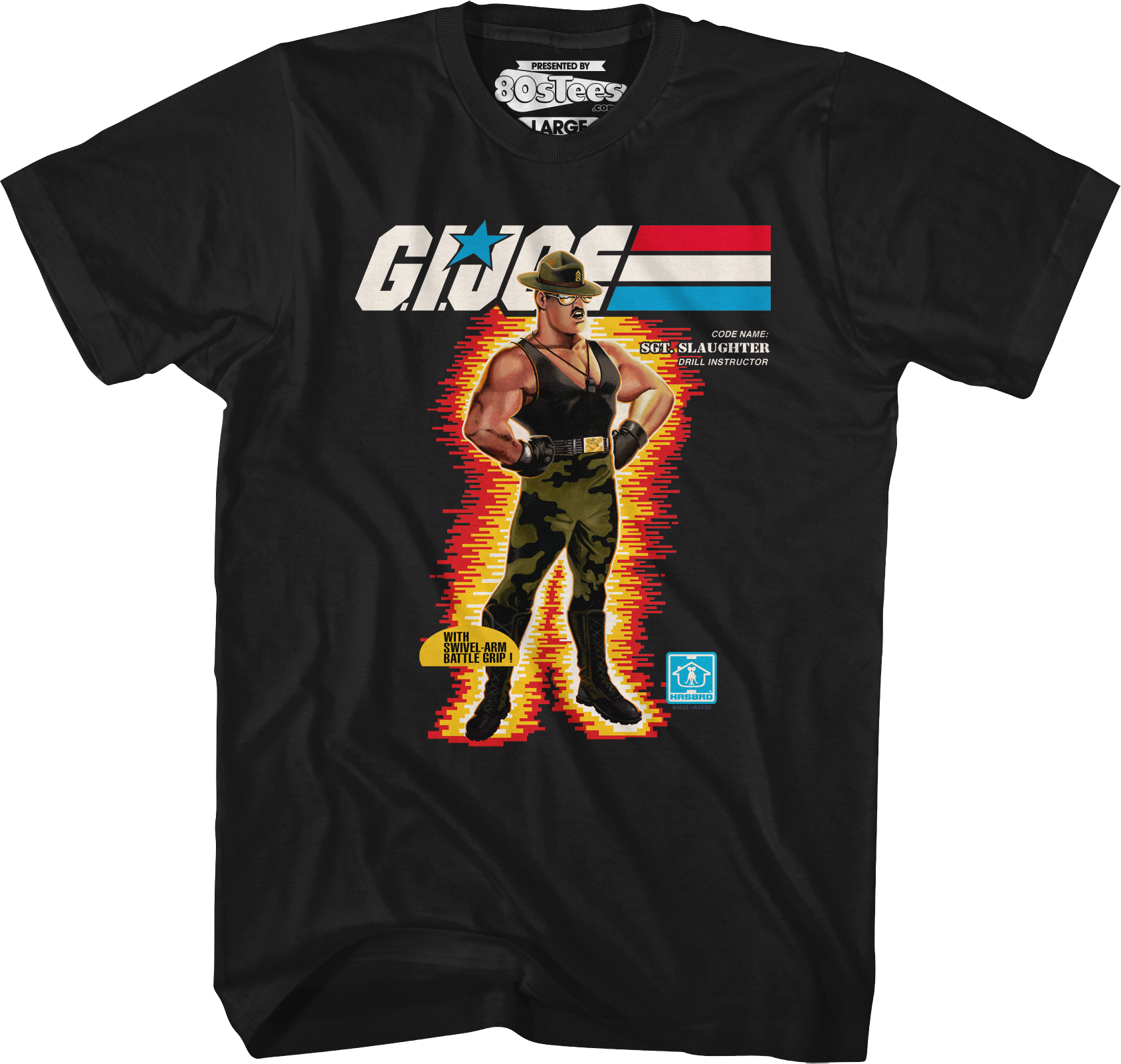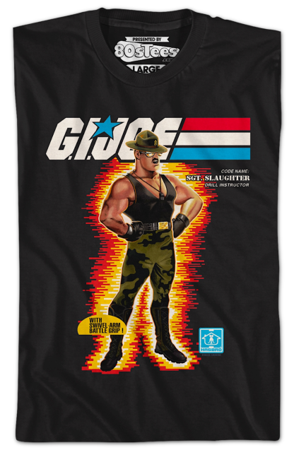 This 80sTees.com exclusive GI Joe t-shirt features the artwork that appeared on the box for the Sgt. Slaughter action figure.