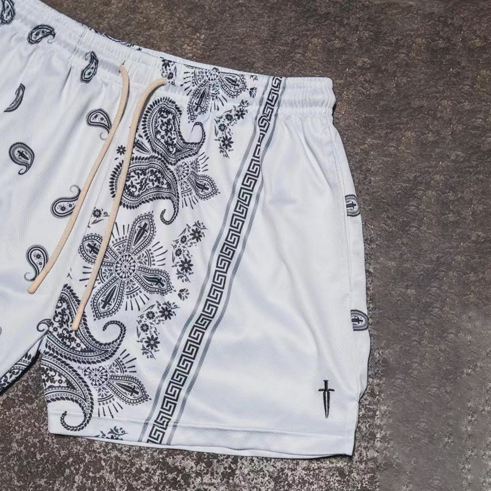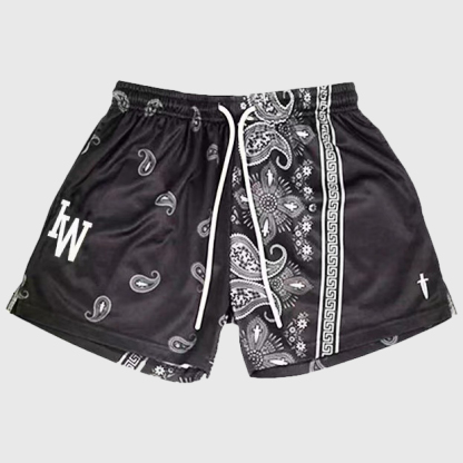 Cashew Flower Sweatpants Mesh Stretch Shorts
