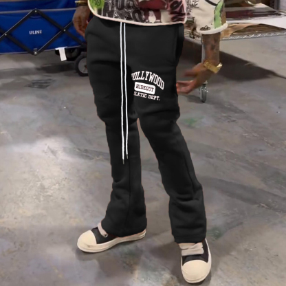 Casual Hollywood Letter Print Pocket Flared Trousers