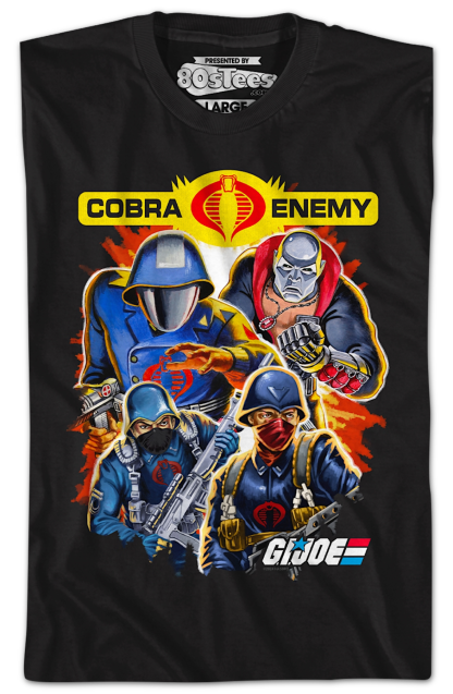 GI Joe is one of the greatest animated series of all time, and everyone will know you are a fan when you wear this 80sTees.com exclusive Cobra Enemy Collage GI Joe T-Shirt!