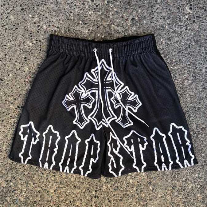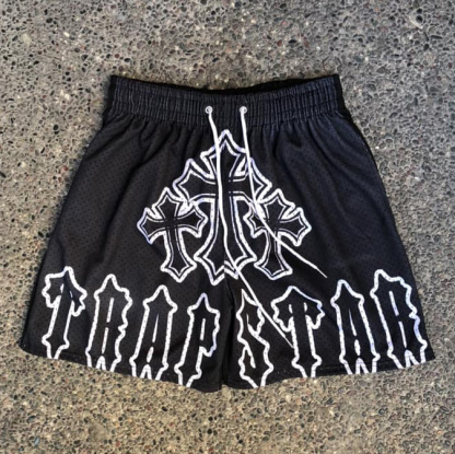 Cross Letters Print Mesh Shorts