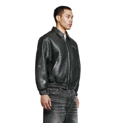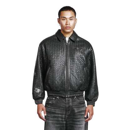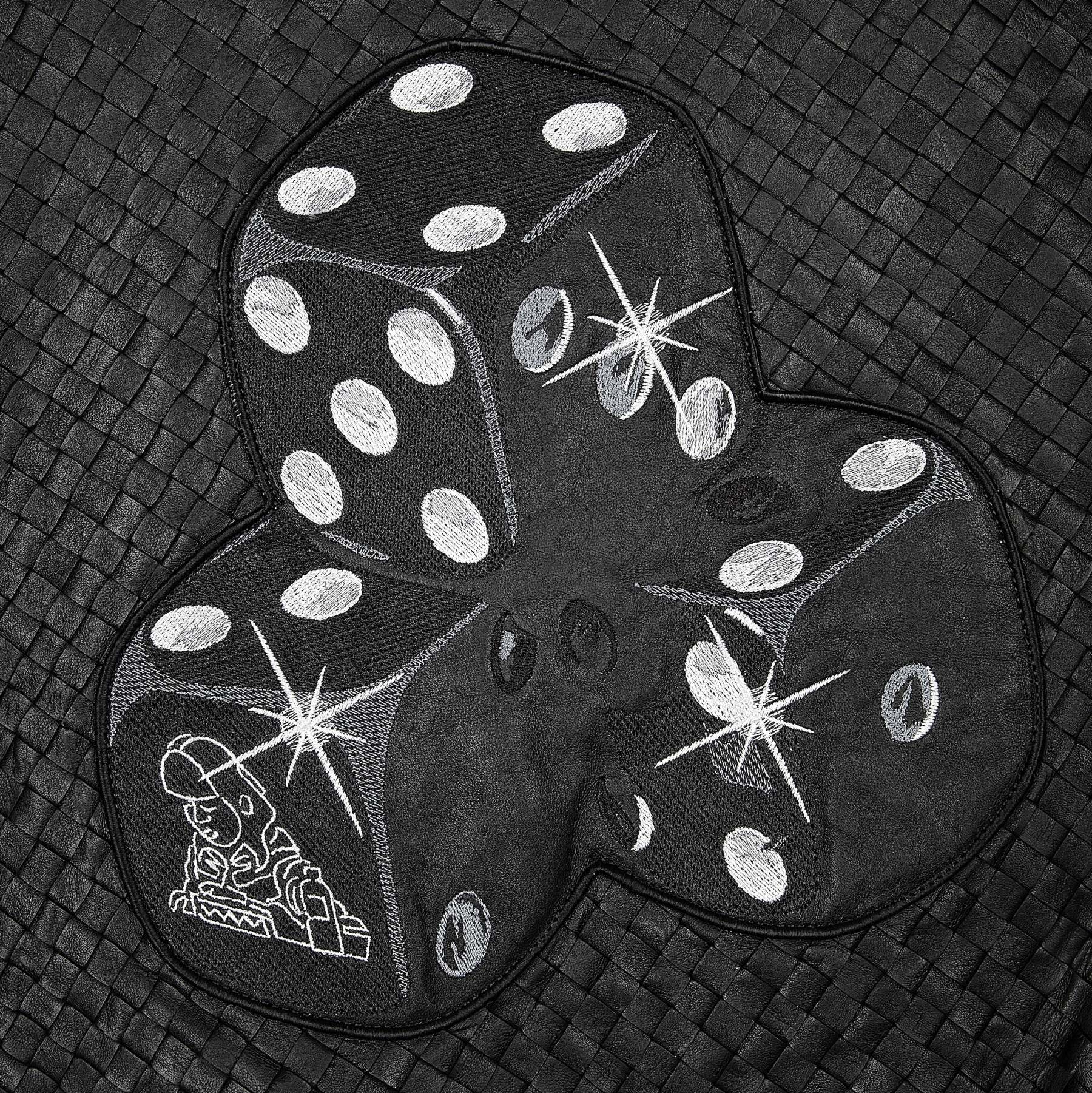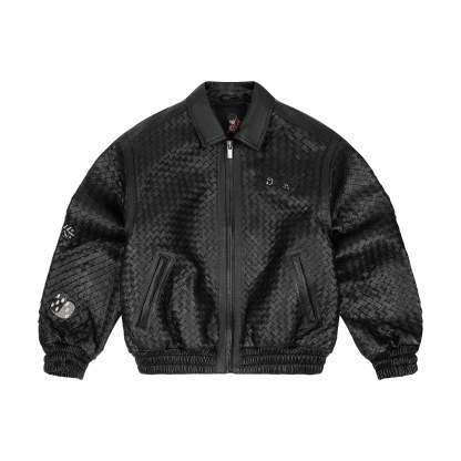 genuine woven leather / embroidered on sleeve / leather appliqué embroideries on front and back / with YKK zipper / fits true to size