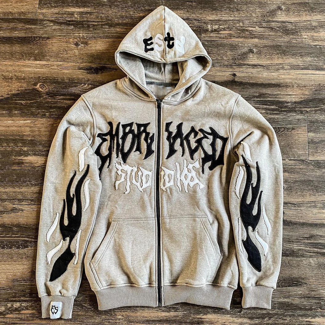 Embracer Studios Flame Print Long Sleeve Zipper Hoodies