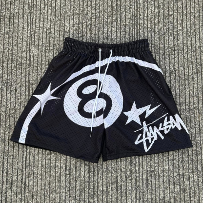 Fashion Billiard No.8 Print Mesh Shorts
